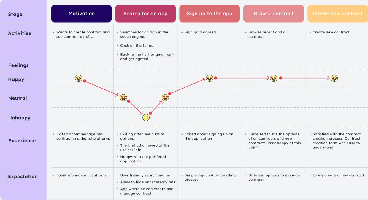 Utilizing the insights from Agreed users, crystallized the core challenges they faced. This stage acted as a foundation, setting the direction for designing features tailored to the entertainment industry's unique contract needs.